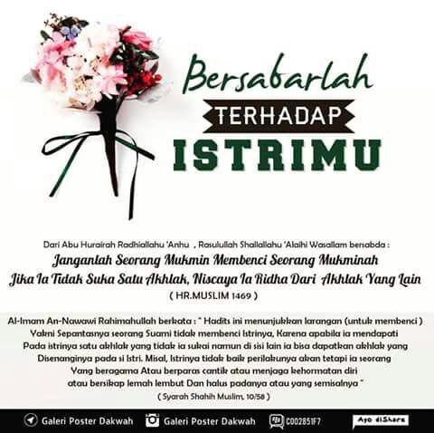 “Sebaik-baik kamu adalah (suami) yang paling baik terhadap keluarganya dan aku adalah yang paling baik terhadap keluargaku.” HRTirmidzi dan disahihkan oleh al-Albani, As Sahihah (no. 285).