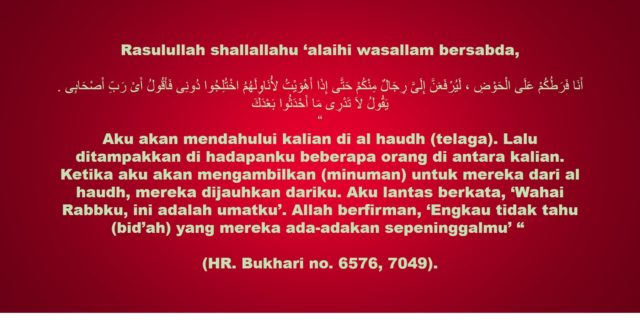 - Kata Abu Syamah (al-Baa’ith, 191) “Contoh ibadat yang thabit dengan sifat tertentu, misalnya wukuf di Arafah, bermalam di Mina, melontar jamrah, sa’iy adalah ibadat yang thabit dengan sifat dan waktu yang tertentu, maka tidak boleh kita melakukan sebahagian dari ibadat tersebut. Jika dilakukan, maka ia menjadi bid’ah.”