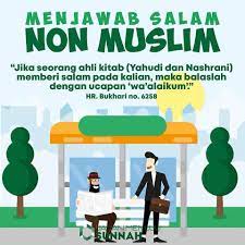 Jika sekiranya non-Muslim memberi salam kepada kita, maka harus membalasnya kembali sesuai dengan perintah al-Qur’an. Rujuk [ an-Nisa’: 86 ]