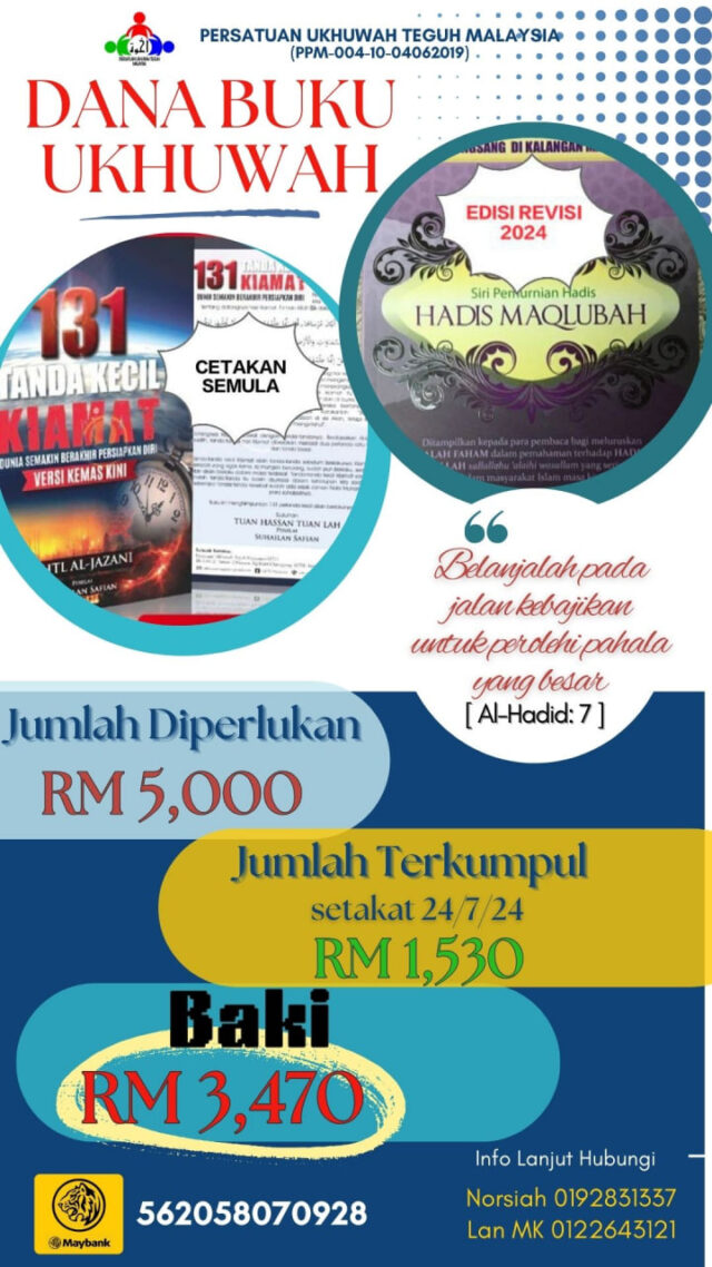 Justeru, Ukhuwah ingin berkongsi ruang kebaikan buat tuan/puan dengan sama-sama membantu menyumbang ke Dana Infaq Buku Ukhuwah yang dianggarkan berjumlah sebanyak RM5,000.00.